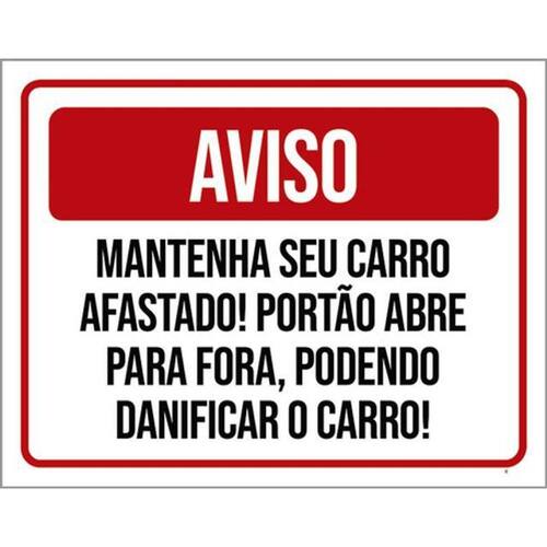 Kit 5 Placas Aviso Mantenha Carro Afastado Portão Abre 36x46 Placas de sinalizaço fabricadas com poliestireno de alto impacto PSAI de 2mm e impressão ultravioleta.