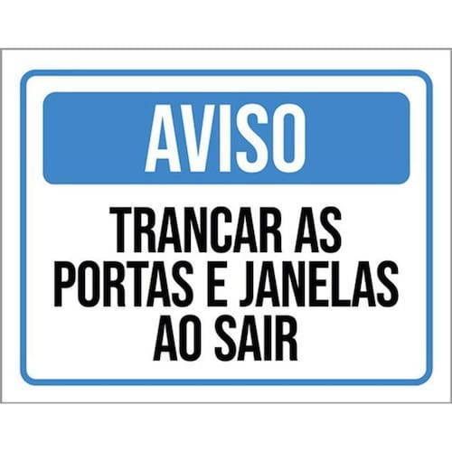 Kit 5 Placas Aviso Trancar Portas Janelas Sair 36x46 Placas de sinalizaço fabricadas com poliestireno de alto impacto PSAI de 2mm e impressão ultravioleta.