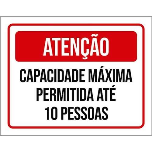 Kit 5 Placas Capacidade Máxima 10 Pessoas 36x46 Placas de sinalizaço fabricadas com poliestireno de alto impacto PSAI de 2mm e impressão ultravioleta.