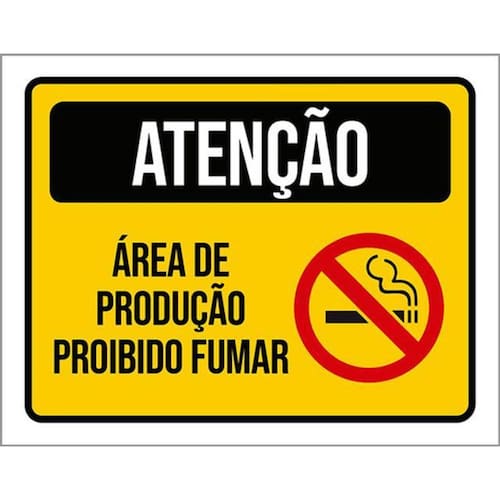 Kit 5 Placas De Atenção Área Produção Não Fume 36x46 Placas de sinalizaço fabricadas com poliestireno de alto impacto PSAI de 2mm e impressão ultravioleta.