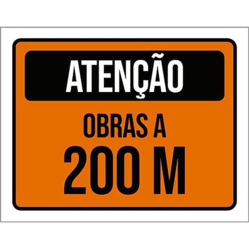Kit 5 Placas De Atenção Obras A 200 Metros 36x46 Placas de sinalizaço fabricadas com poliestireno de alto impacto PSAI de 2mm e impressão ultravioleta.