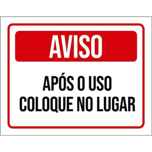 Kit 5 Placas De Aviso Após O Uso Coloque No Lugar 36x46 Placas de sinalizaço fabricadas com poliestireno de alto impacto PSAI de 2mm e impressão ultravioleta.