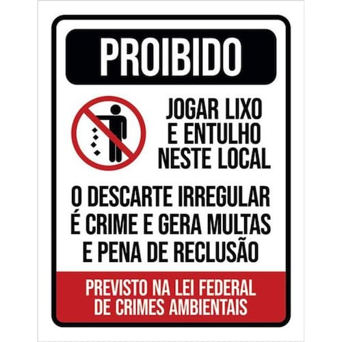 Kit 5 Placas De Proibido Jogar Lixo Lei Federal 36x46 Placas de sinalizaço fabricadas com poliestireno de alto impacto PSAI de 2mm e impressão ultravioleta.