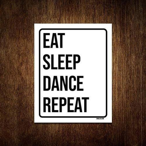 Kit 5 Placas Decorativa Eat Sleep Dance Repeat - Informações do Produto: Kit com 5 placas decorativas iguais fabricadas com poliestireno de alto impacto PSAI de 2mm e adesivo vinil automotivo de alta performance. - Medidas: 18cm x 23cm - Fixação: Todas as placas possuem adesivo dupla face para aplicação em qualquer tipo de superfície lisa. Garantia de 12 meses e disponibilidade imediata. Marca: Sinalico.Com