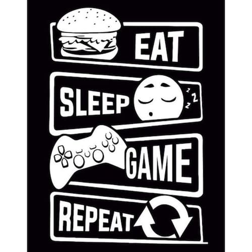 Kit 5 Placas Eat Sleep Game Repeat Preta 36x46 Placas de sinalizaço fabricadas com poliestireno de alto impacto PSAI de 2mm e impressão ultravioleta.