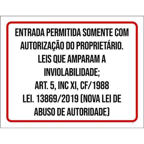 Kit 5 Placas Entrada Autorização Proprietário 36x46 Placas de sinalizaço fabricadas com poliestireno de alto impacto PSAI de 2mm e impressão ultravioleta.