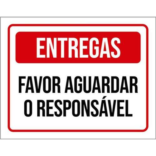 Kit 5 Placas Entregas Favor Aguardar Responsável 36x46 Placas de sinalizaço fabricadas com poliestireno de alto impacto PSAI de 2mm e impressão ultravioleta.