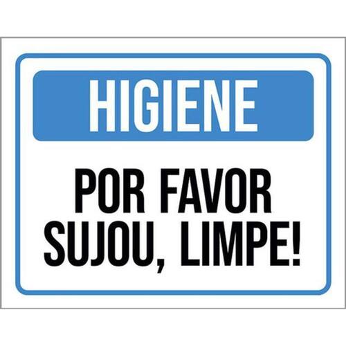 Kit 5 Placas Higiene Por Favor Sujou Limpe Azul 36x46 Placas de sinalizaço fabricadas com poliestireno de alto impacto PSAI de 2mm e impressão ultravioleta.