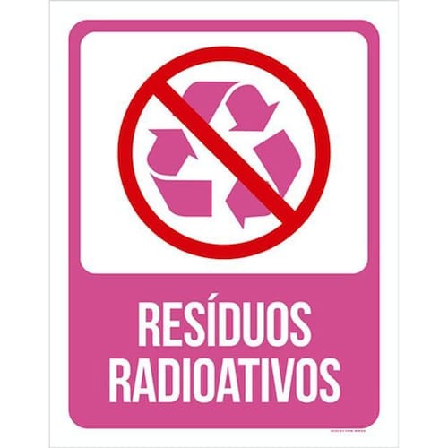 Kit 5 Placas Lixo Rosa Resíduos Radioativos 36x46 Placas de sinalizaço fabricadas com poliestireno de alto impacto PSAI de 2mm e impressão ultravioleta.