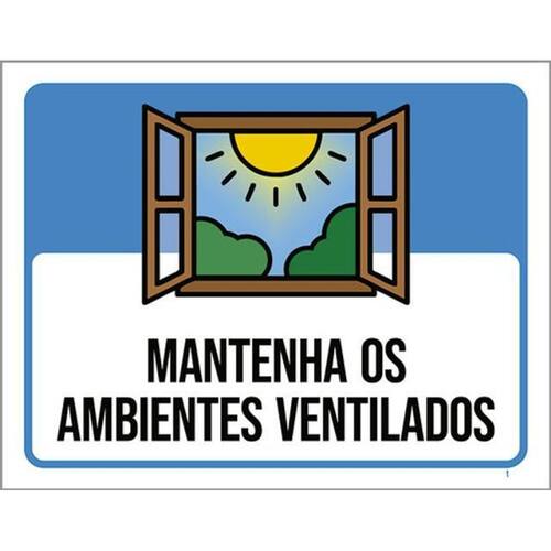 Kit 5 Placas Mantenha Os Ambientes Ventilados 36x46 Placas de sinalizaço fabricadas com poliestireno de alto impacto PSAI de 2mm e impressão ultravioleta.