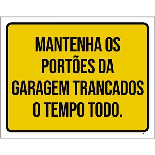 Kit 5 Placas Mantenha Portões Garagem Trancados Tempo 36x46 Placas de sinalizaço fabricadas com poliestireno de alto impacto PSAI de 2mm e impressão ultravioleta.