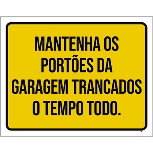 Kit 5 Placas Mantenha Portões Garagem Trancados Tempo 36x46 Placas de sinalizaço fabricadas com poliestireno de alto impacto PSAI de 2mm e impressão ultravioleta.