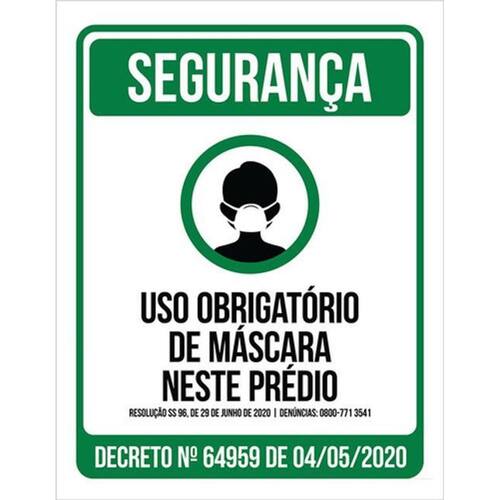 Kit 5 Placas Obrigatório Máscara Neste Prédio 36x46 Placas de sinalizaço fabricadas com poliestireno de alto impacto PSAI de 2mm e impressão ultravioleta.
