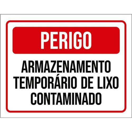 Kit 5 Placas Perigo Armazenamento Lixo Contaminado Placas de sinalizaço fabricadas com poliestireno de alto impacto PSAI de 2mm e impressão ultravioleta.