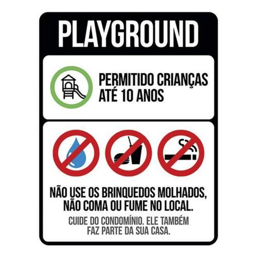 Kit 5 Placas Playground Regras De Uso 36x46 Placas de sinalizaço fabricadas com poliestireno de alto impacto PSAI de 2mm e impressão ultravioleta.