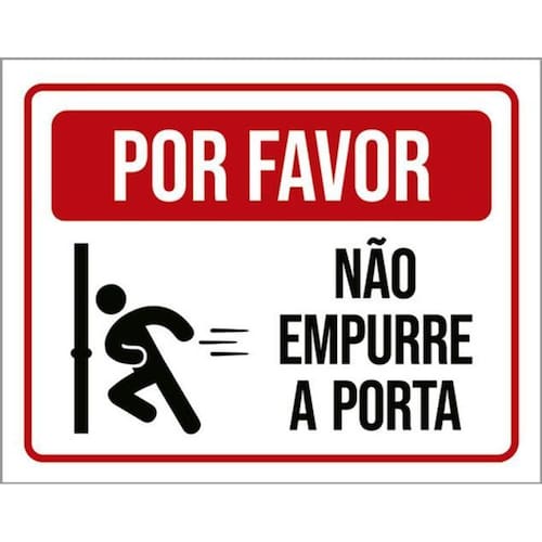 Kit 5 Placas Por Favor Não Empurre A Porta 36x46 Placas de sinalizaço fabricadas com poliestireno de alto impacto PSAI de 2mm e impressão ultravioleta.