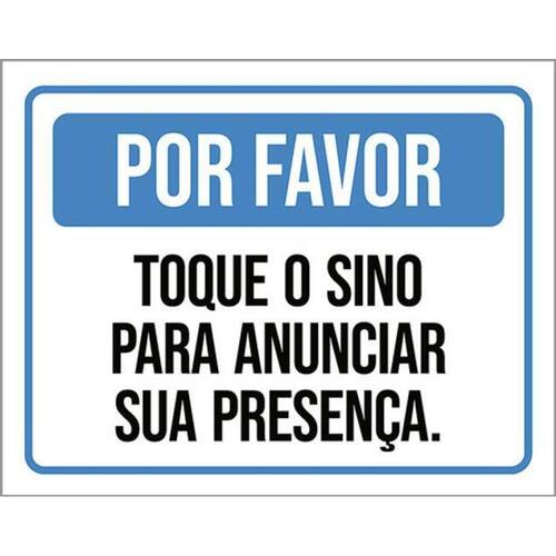 Kit 5 Placas Por Favor Toque Sino Anunciar Presença 36x46 Placas de sinalizaço fabricadas com poliestireno de alto impacto PSAI de 2mm e impressão ultravioleta.