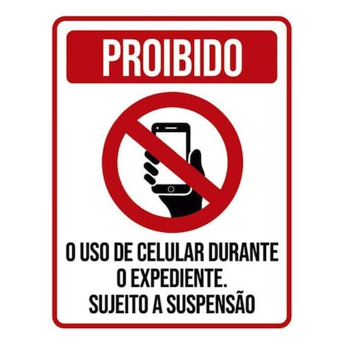 Kit 5 Placas Proibido Uso Celular Durante Expediente Placas de sinalizaço fabricadas com poliestireno de alto impacto PSAI de 2mm e impressão ultravioleta.