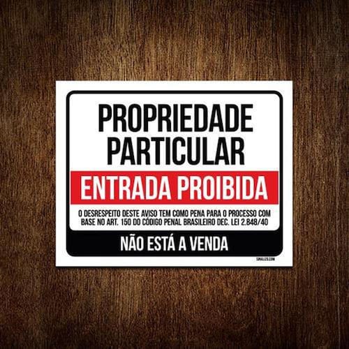 Kit 5 Placas Propriedade Particular Não Está A Venda Preto - Informações do Produto: Placas decorativas fabricadas com poliestireno de alto impacto PSAI de 2mm e adesivo vinil automotivo de alta performance. - Medidas: 18cm x 23cm - Fixação: Todas as placas possuem adesivo dupla face para aplicação em qualquer tipo de superfície lisa. Garantia de 12 meses e disponibilidade imediata. Marca: Sinalizo.Com