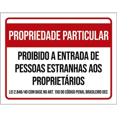 Kit 5 Placas Propriedade Particular Proibido Estranhos 36x46