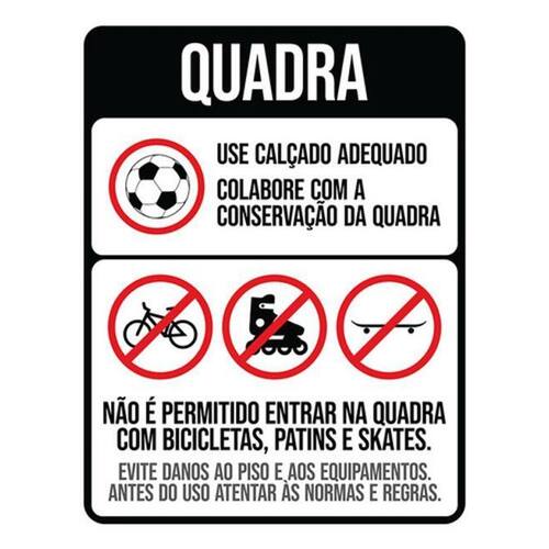 Kit 5 Placas Quadra Regras De Uso 36x46 Placas de sinalizaço fabricadas com poliestireno de alto impacto PSAI de 2mm e impressão ultravioleta.