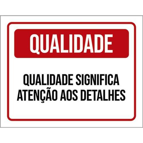 Kit 5 Placas Qualidade Significa Atenção Detalhes 36x46 Placas de sinalizaço fabricadas com poliestireno de alto impacto PSAI de 2mm e impressão ultravioleta.