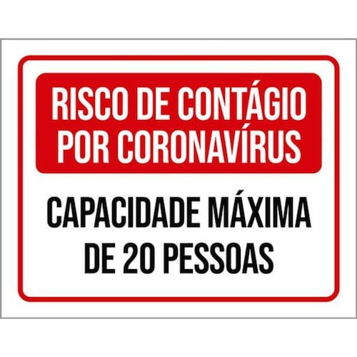 Kit 5 Placas Risco Contágio 20 Pessoas 36x46