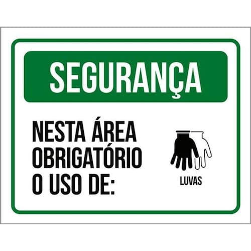 Kit 5 Placas Segurança Área Obrigatório Uso De Luvas Placas de sinalizaço fabricadas com poliestireno de alto impacto PSAI de 2mm e impressão ultravioleta.