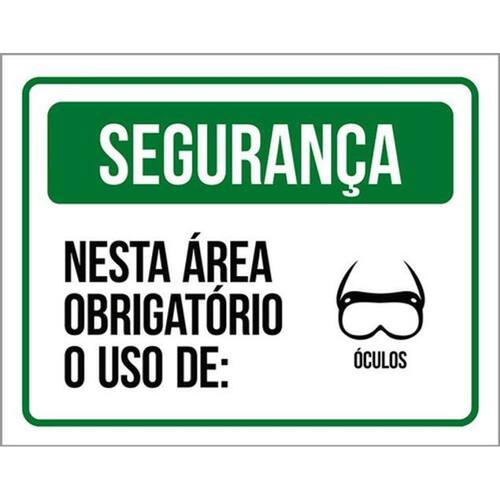Kit 5 Placas Segurança Área Obrigatório Uso De Óculos Placas de sinalizaço fabricadas com poliestireno de alto impacto PSAI de 2mm e impressão ultravioleta.