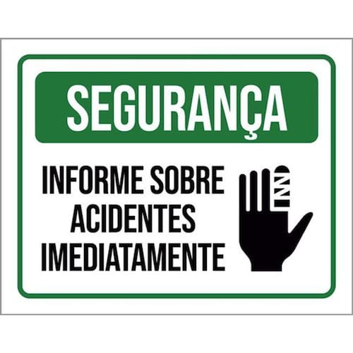 Kit 5 Placas Segurança Informe Acidentes Imediatamente Ícone Placas de sinalizaço fabricadas com poliestireno de alto impacto PSAI de 2mm e impressão ultravioleta.