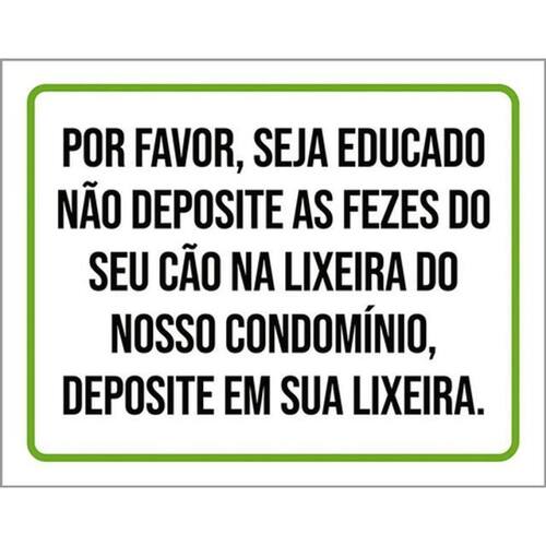Kit 5 Placas Seja Educado Não Deposite Fezes Do Seu Cão Placas de sinalizaço fabricadas com poliestireno de alto impacto PSAI de 2mm e impressão ultravioleta.