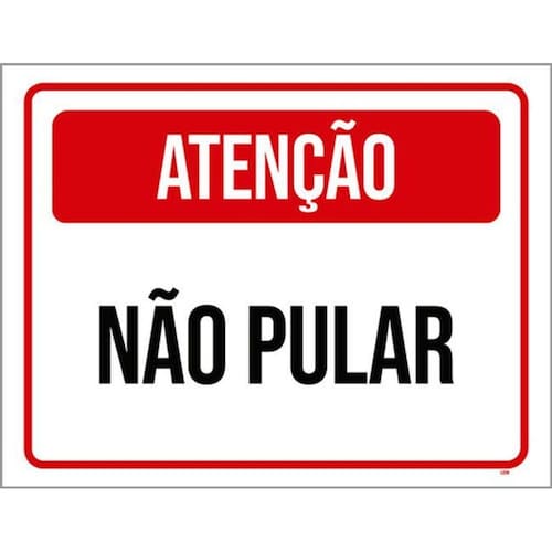 Kit 5 Placas Sinalização - Atenção Não Pular Vermelha Placas de sinalizaço fabricadas com poliestireno de alto impacto PSAI de 2mm e impressão ultravioleta.