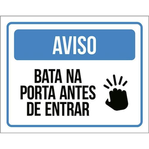 Kit 5 Placas Sinalização Aviso Bata Na Porta Antes De Entrar Placas de sinalizaço fabricadas com poliestireno de alto impacto PSAI de 2mm e impressão ultravioleta.