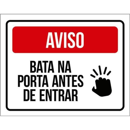 Kit 5 Placas Sinalização - Aviso Bata Porta Antes Entrar