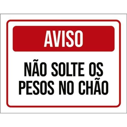 Kit 5 Placas Sinalização - Aviso Não Solte Pesos No Chão Placas de sinalizaço fabricadas com poliestireno de alto impacto PSAI de 2mm e impressão ultravioleta.