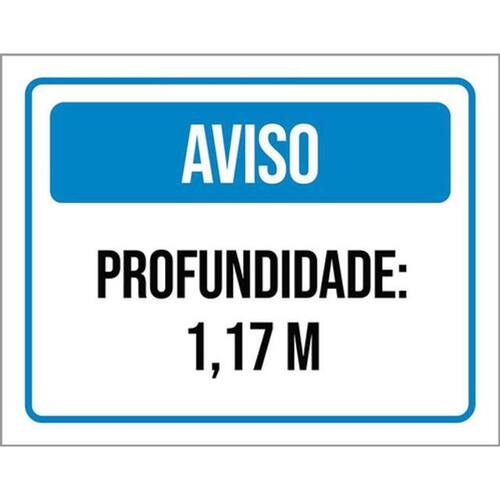 Kit 5 Placas Sinalização - Aviso Profundidade 1,17 Metros Placas de sinalizaço fabricadas com poliestireno de alto impacto PSAI de 2mm e impressão ultravioleta.