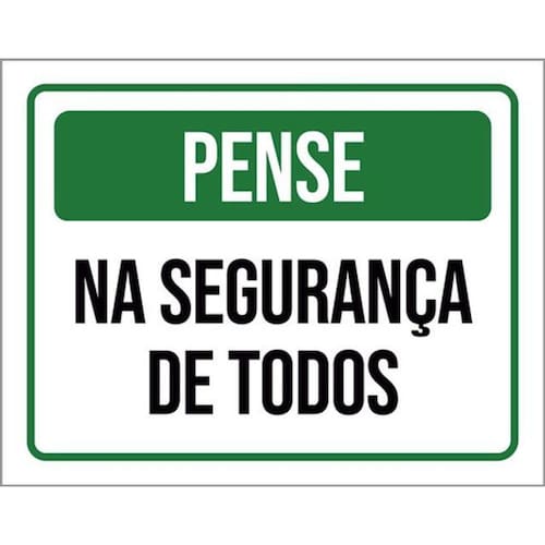 Kit 5 Placas Sinalização - Pense Na Segurança De Todos Placas de sinalizaço fabricadas com poliestireno de alto impacto PSAI de 2mm e impressão ultravioleta.