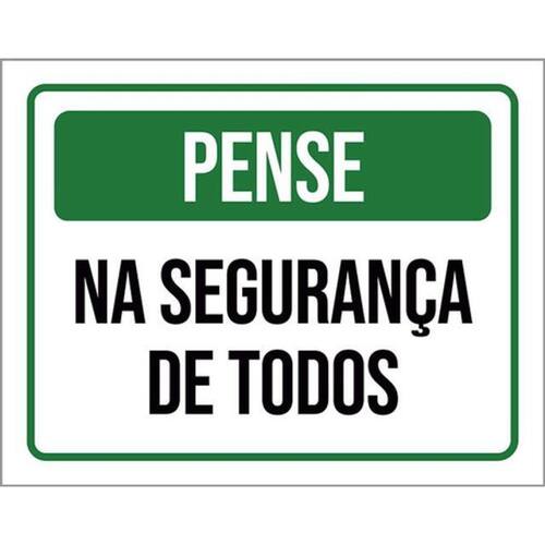 Kit 5 Placas Sinalização - Pense Na Segurança De Todos
