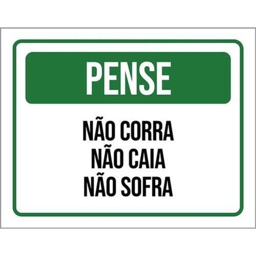 Kit 5 Placas Sinalização Pense Não Corra Não Caia Não Sofra