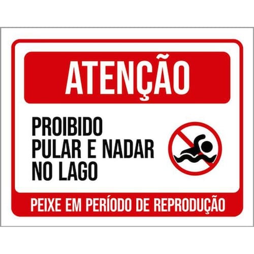 Kit 5 Placas Sinalização - Proibido Pular Nadar No Lago Placas de sinalizaço fabricadas com poliestireno de alto impacto PSAI de 2mm e impressão ultravioleta.