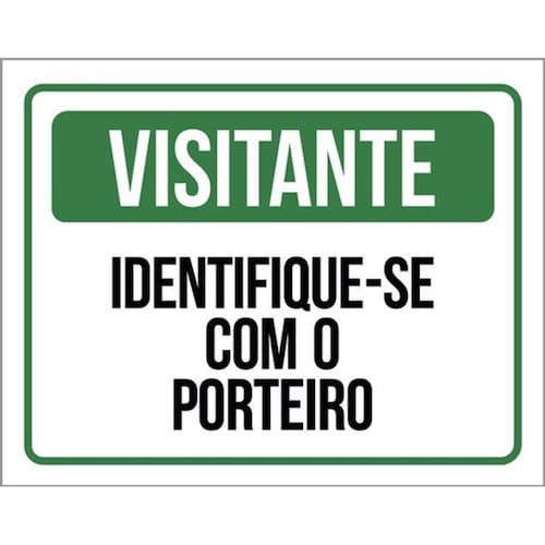 Kit 5 Placas Sinalização - Visitante Identifique-se Porteiro Placas de sinalizaço fabricadas com poliestireno de alto impacto PSAI de 2mm e impressão ultravioleta.