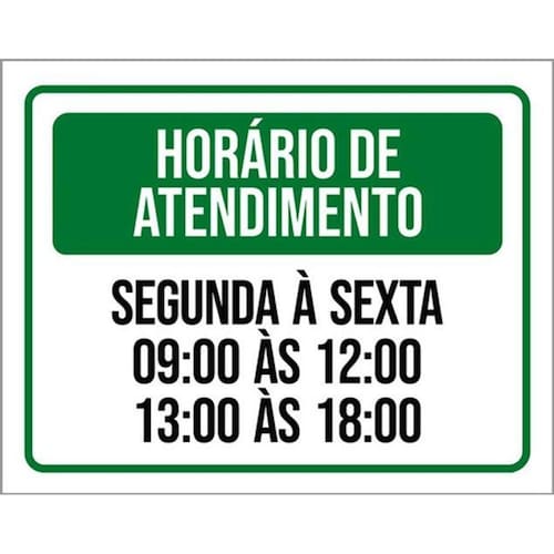 Kit 5 Placas Verde - Horário Atendimento Segunda Sexta Placas de sinalizaço fabricadas com poliestireno de alto impacto PSAI de 2mm e impressão ultravioleta.