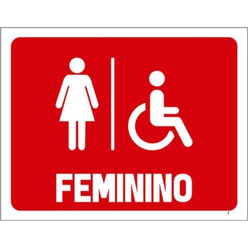Kit 5 Placas Vermelho Banheiro Feminino 36x46 Placas de sinalizaço fabricadas com poliestireno de alto impacto PSAI de 2mm e impressão ultravioleta.