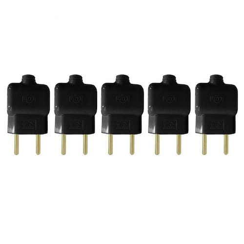 2P Macho 10A/250V Cor: Preto Dimensões: - Comprimento: 7,5cm - Altura: 2cm - Largura: 3,5cm Composição: Plástico isolante com contatos em metal Validade indeterminada A instalação deve ser feita por um profissional qualificado