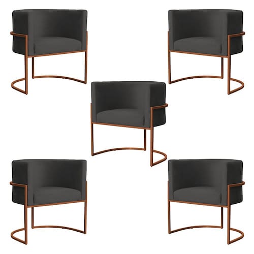 Kit 5 Poltronas Decorativa Luana Base Bronze Veludo Cinza - Montanaris Decor