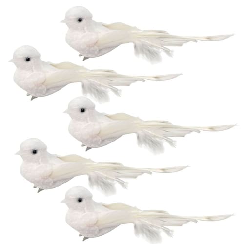 Kit 5 Pombas Brancas Natal Plumas e Lantejoulas 12cm