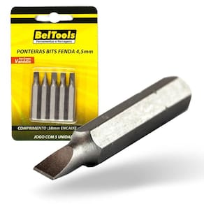 Kit 5 Ponta Bit Fenda CV 38mm x 1/4 x 4,5mm Beltools