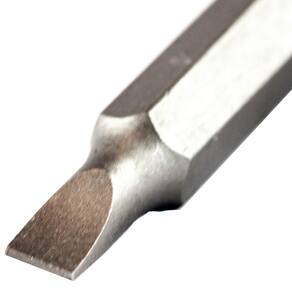 Indicação: Indicado para fixar e soltar parafusos com fenda simples. Utilizado em parafusadeiras e suportes manuais. Material: Aço cromo vanádio.