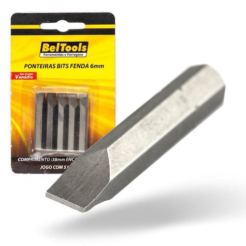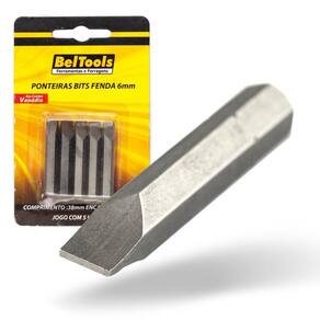 Kit 5 Ponta Bit Fenda CV 38mm x 1/4 x 6,0mm Beltools