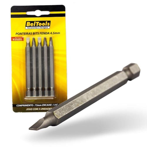 Kit 5 Ponta Bit Fenda CV 75mm x 1/4 x 4,5mm Beltools